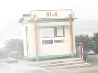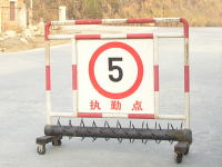 | ダムの高さと同じ標高にある展望台 | 工事地区全域に厳戒警備 | 洪水吐き水の展望用堤防標高は81.4m |