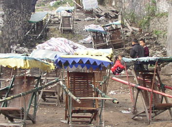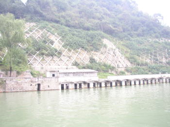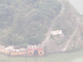 | 断崖絶壁・風箱峽に葬られた棺と人骨 | 白帝城近くの観光地入口も水没間近 |