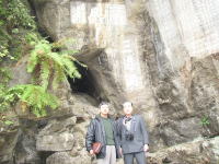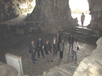 | 三游洞の大きな鍾乳洞 | 長江を望む劉備像と |