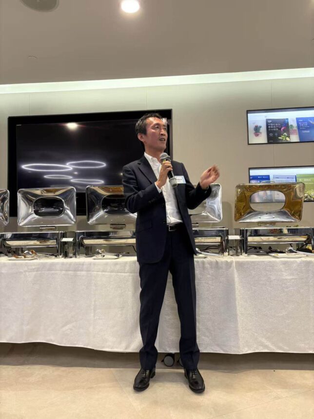 懇親会では、冒頭在中国日本大使館の金井参事官ご挨拶を賜りました。